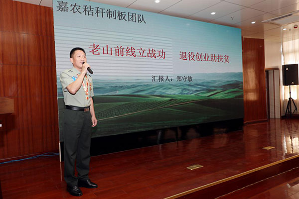 百余項目對決 助力退役軍人精準就業(yè) 梅良仿 攝 “我參賽的項目是利用農作物的秸稈生產(chǎn)零甲醛、高強…